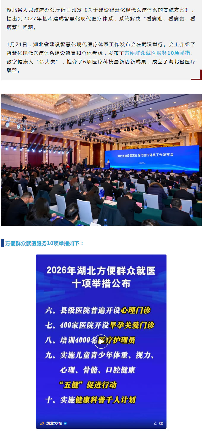 2026年湖北方便群众就医十项举措公布